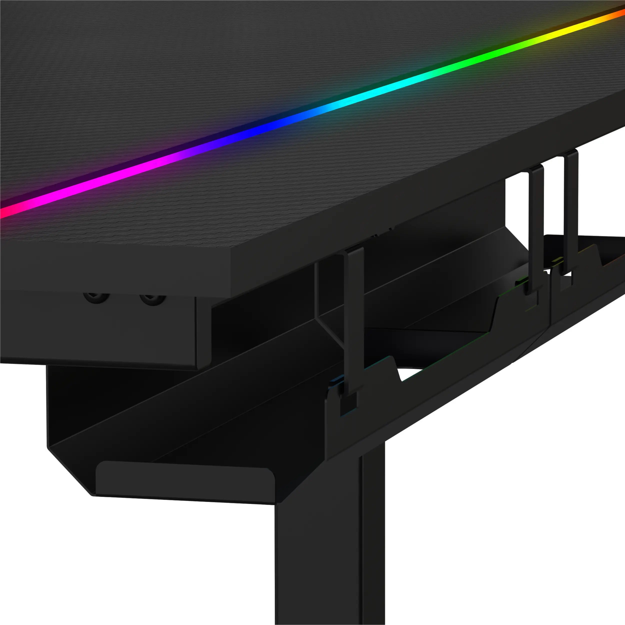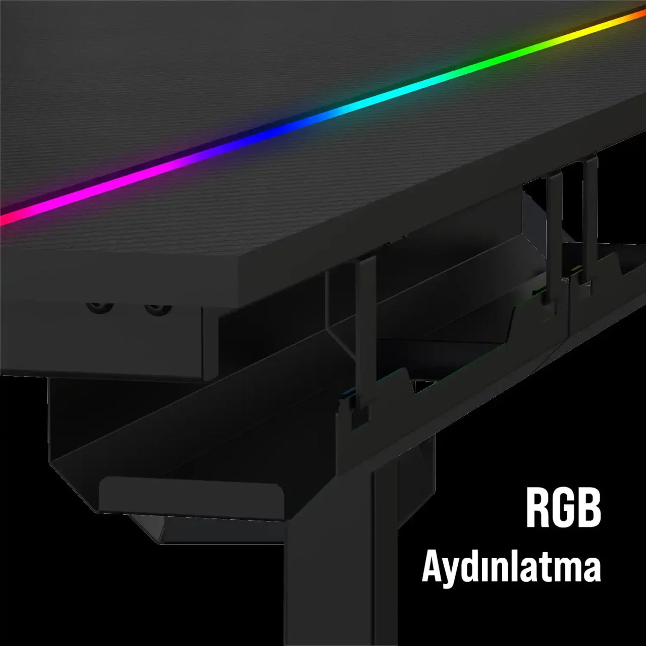 Masa'ya entegre edilen RGB aydınlatma, çalışma veya oyun alanına bambaşka bir atmosfer katar. Farklı renk ve efekt modlarını kolayca değiştirebileceğin uzaktan kumanda ile ortam ışığını dilediğin gibi kişiselleştirebilirsin. Ister sakin bir çalışma ortamı, ister dinamik bir oyun atmosferi yarat – kontrol tamamen sende!