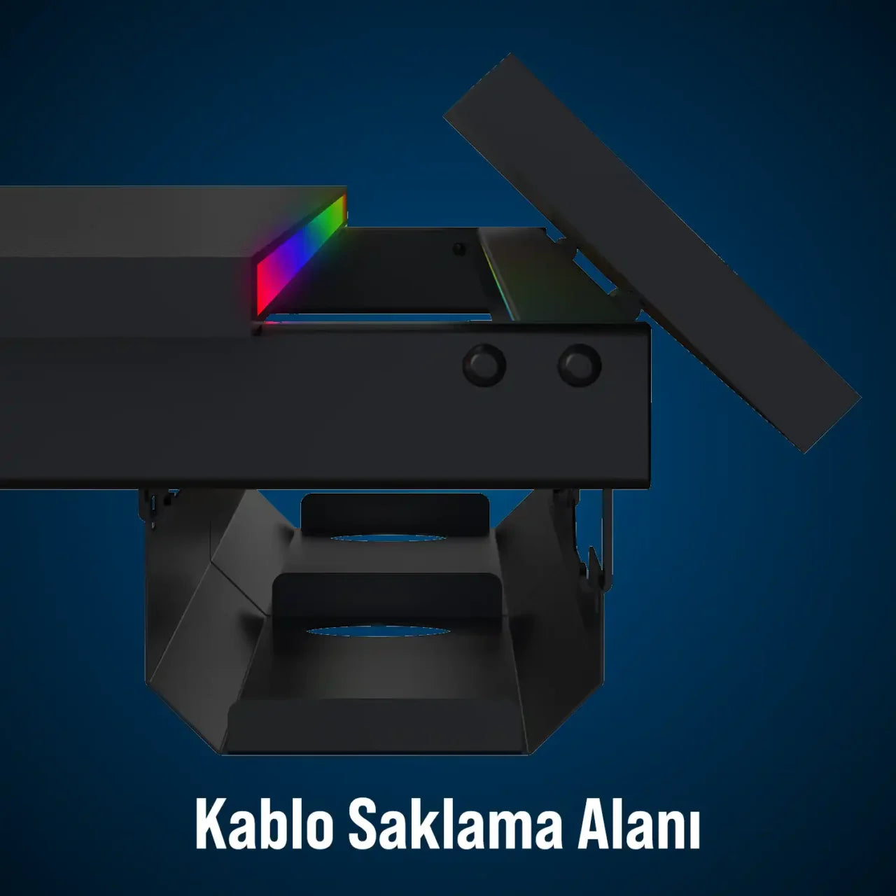 Masanın altına entegre edilen geniş kablo saklama alanı sayesinde tüm kablolarını gizleyebilir, masa üstünde dağınıklığa yer bırakmazsın. Güç kablolarından şarj adaptörlerine kadar her şey düzenli bir şekilde toparlanır. Bu sayede hem daha estetik bir görünüm elde edilir hem de çalışma/oyun alanında hareket özgürlüğün artar. Düzenli ve temiz bir masa, odaklanmanı kolaylaştırırken ekipmanlarının ömrünü de uzatır.