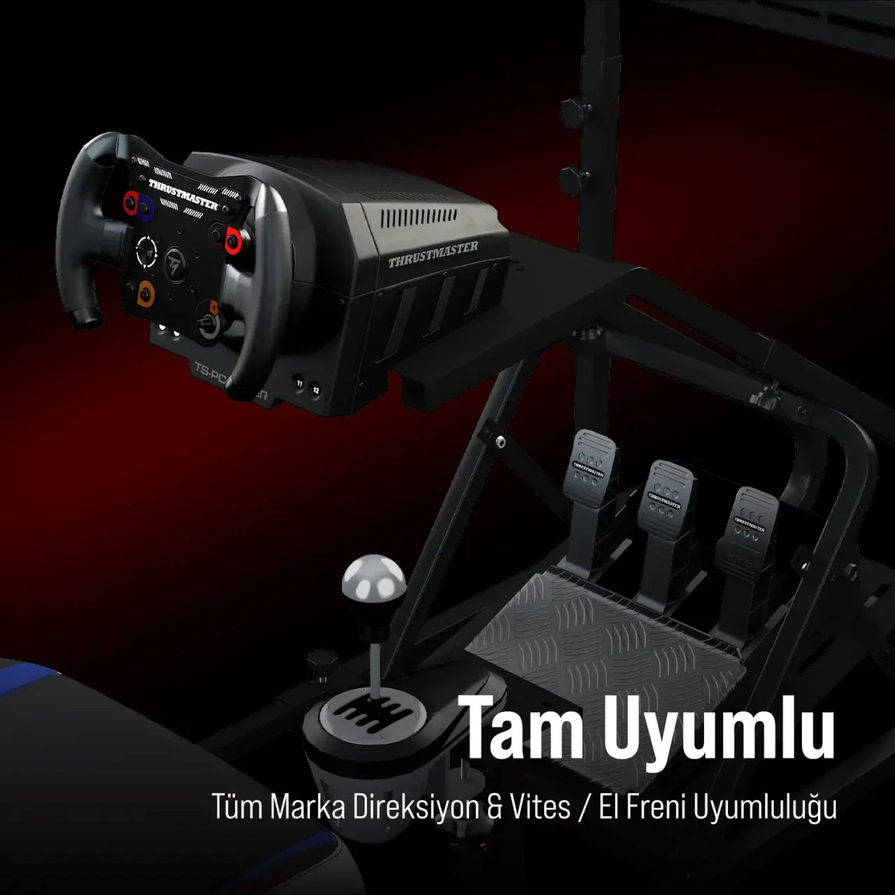 Simülatör kokpitimiz; Logitech, Thrustmaster, Fanatec ve diğer tüm popüler direksiyon ve vites setleriyle eksiksiz uyumludur. Esnek montaj yapısı sayesinde istediğiniz ekipmanı kolayca bağlayabilir, gerçekçi ve kesintisiz bir sürüş deneyimi yaşayabilirsiniz.