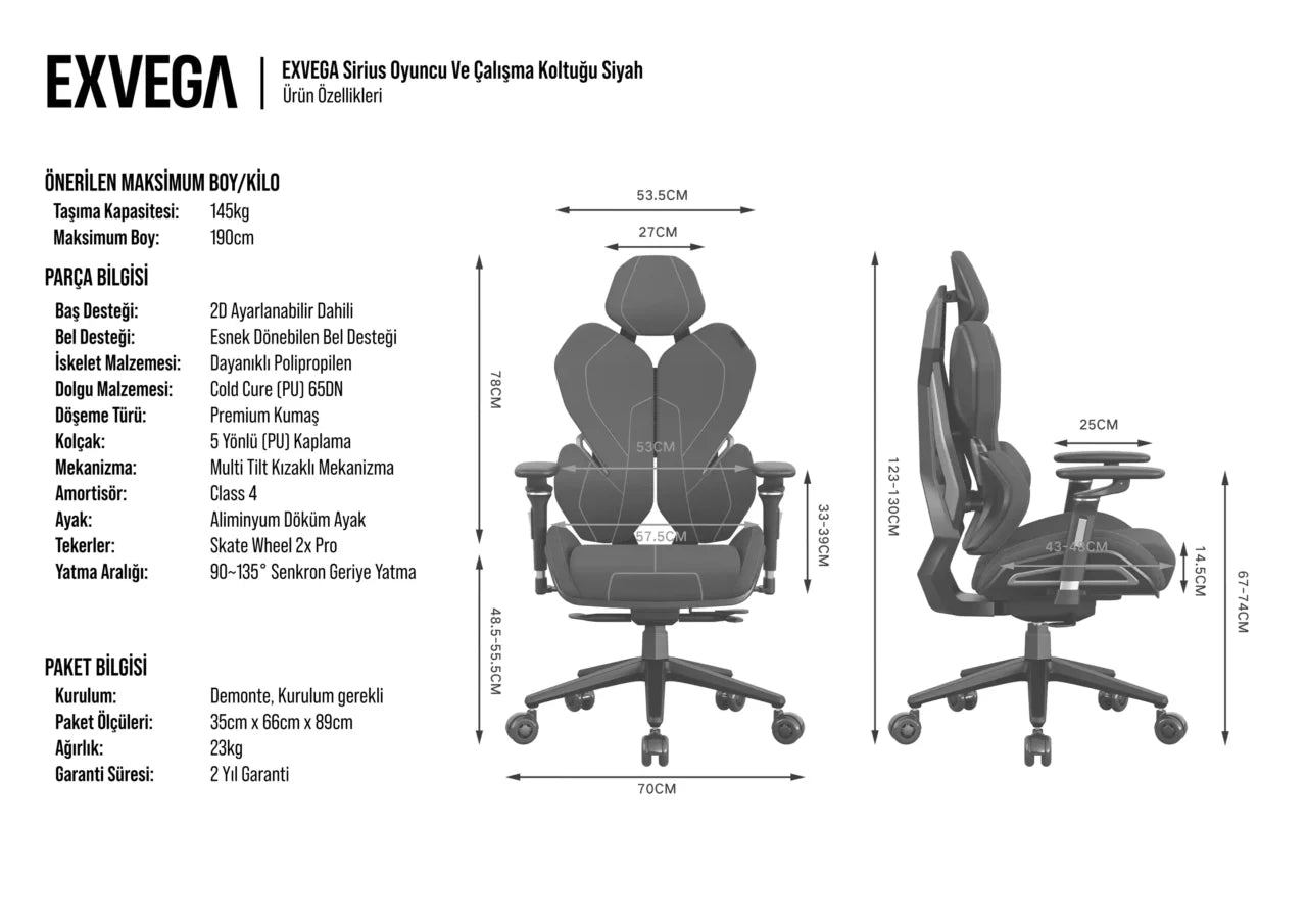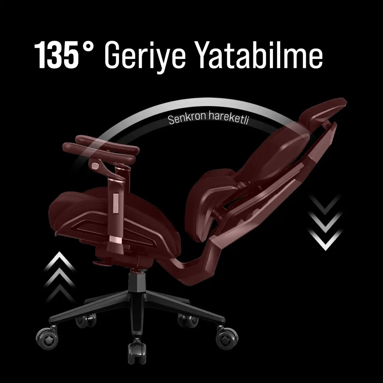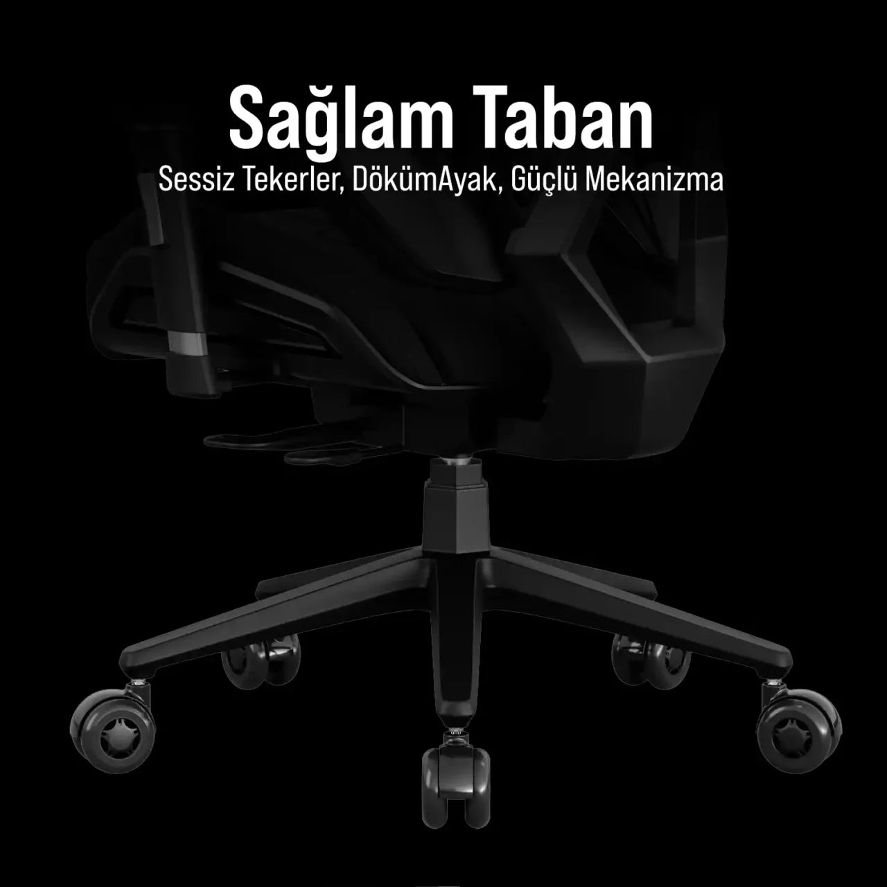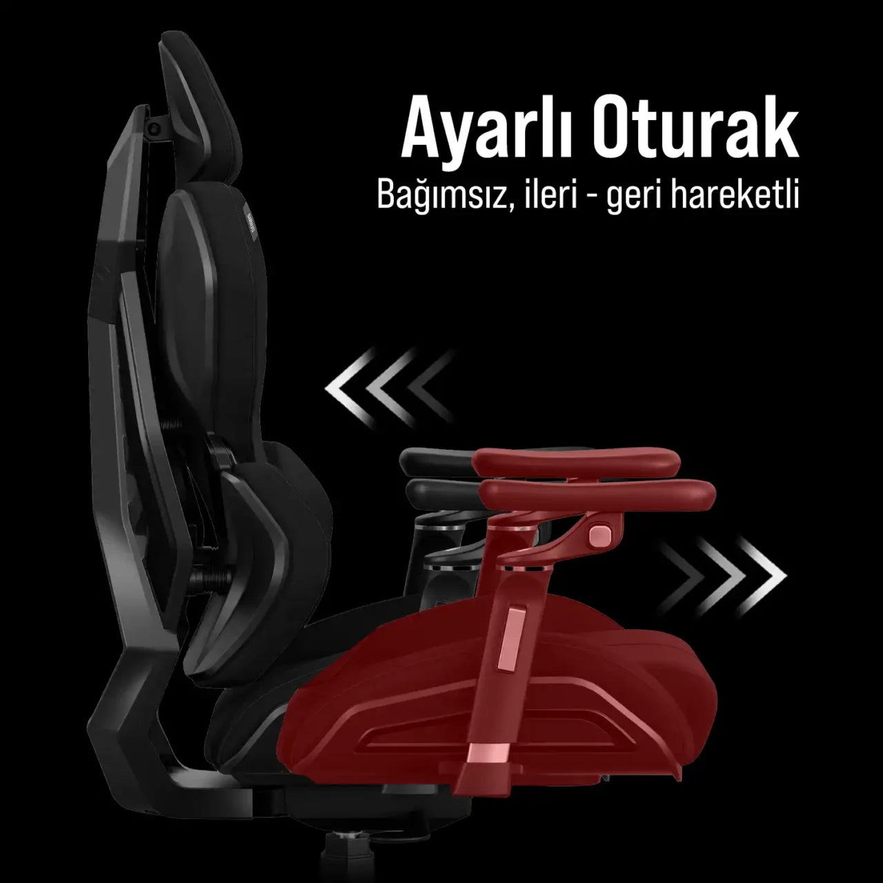 Omurga hareketlerini doğal şekilde takip eden esnek sırt yapısı, sağa ve sola dönerek üst vücut hareketlerinize uyum sağlar. Bu sayede hem oyun hem çalışma sırasında serbest hareket imkânı sunar, kas gerginliğini azaltır. Dinamik destek sistemi, uzun süreli oturumlarda dahi omuz ve bel bölgesinde maksimum konfor sağlar.