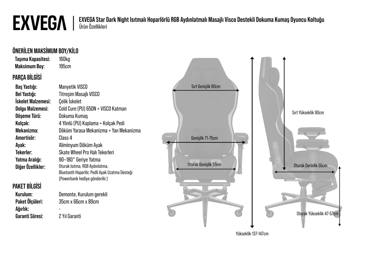 Star Dark Knight, konforu ileri seviyeye taşıyan yeni nesil oyuncu koltuğu. Visco oturum alanı vücuduna tam uyum sağlarken, entegre ısıtma özelliği soğuk günlerde seni sarar. Ayak uzatma sistemiyle oturduğun her anı keyfe dönüştürür. Teknoloji, ergonomi ve lüks detayların birleştiği bu koltuk, sadece oturmak için değil, yaşamak için tasarlandı.