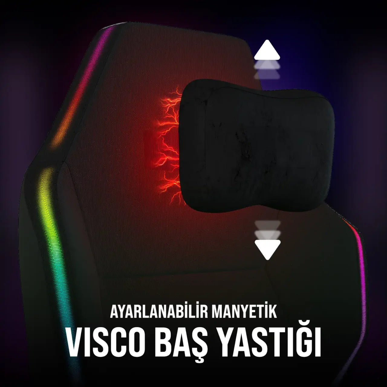 Boyun ve baş bölgesine tam destek sunan visco baş yastığı, manyetik yapısı sayesinde kolayca yukarı-aşağı ayarlanabilir. Yumuşak visco sünger, uzun süreli kullanımda konforu artırırken, ergonomik formu doğru duruşu destekler. Oyun veya çalışma sırasında boyun ağrılarını en aza indirir, rahatlığı üst seviyeye taşır.